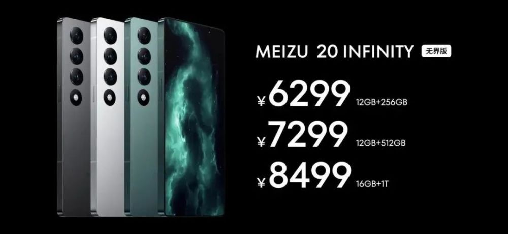 价格方面,魅族 20 INFINITY 无界版 12 + 256GB 6299 元,12 + 512GB 7299 元,16GB + 1TB 8499 元。