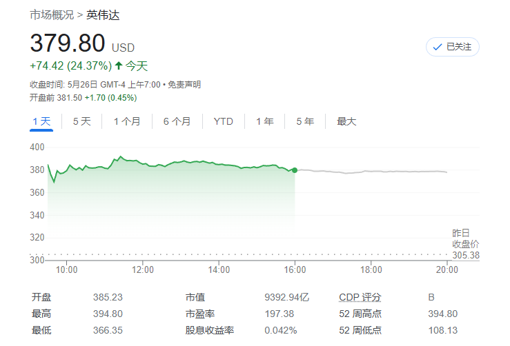 英伟达股价收盘上涨 24%,市值接近 1 万亿美元,同时 AMD 的股价也大涨 11%,两家公司都是 GPU 领域的大头;美满科技(Marvell)上涨 7.6%,博通上涨 7.25%。