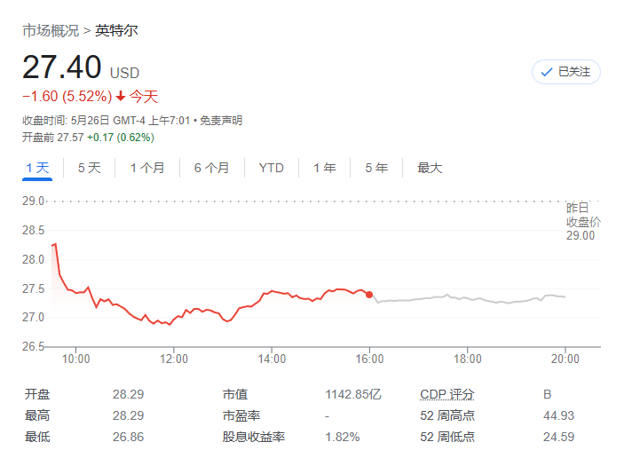 然而一些传统计算机芯片公司的股价却在下跌,英特尔下跌了 5.52%,过去五天里累计下跌 7.31%;专注移动芯片领域的高通公司最初下跌 1.3%,但收盘上涨约 1%。